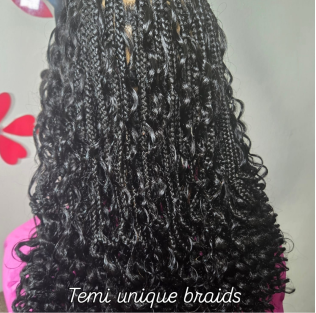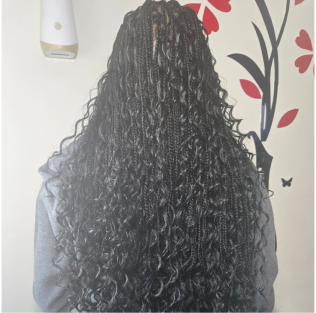 Lightweight knotless braids finished with soft, bohemian curls for a natural, effortless look that blends elegance with freedom.